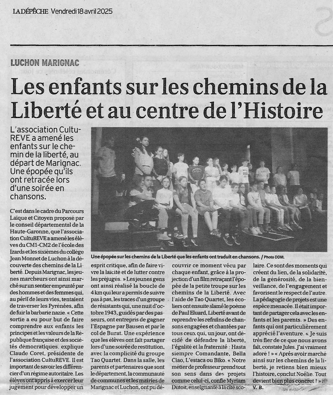 voir ci-dessous le film des enfants sur le Chemin de la liberté de Marignac et le film de l’action de restitution